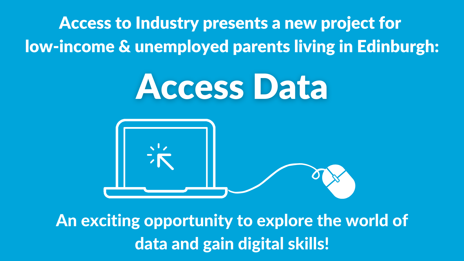 Access DataOur new project, Access Data, supports Edinburgh parents in gaining or improving knowledge and skills related to the world of data, preparing them for the demands of the contemporary job market. Tailored to the individual needs of parents, the project is made both for those with no previous interest in data, as well as those who already possess some knowledge and skills. Access Data aims at helping parents to overcome any challenges they might be facing to move into employment or progress in their current job. You can find more information here, or contact us if you have any questions.