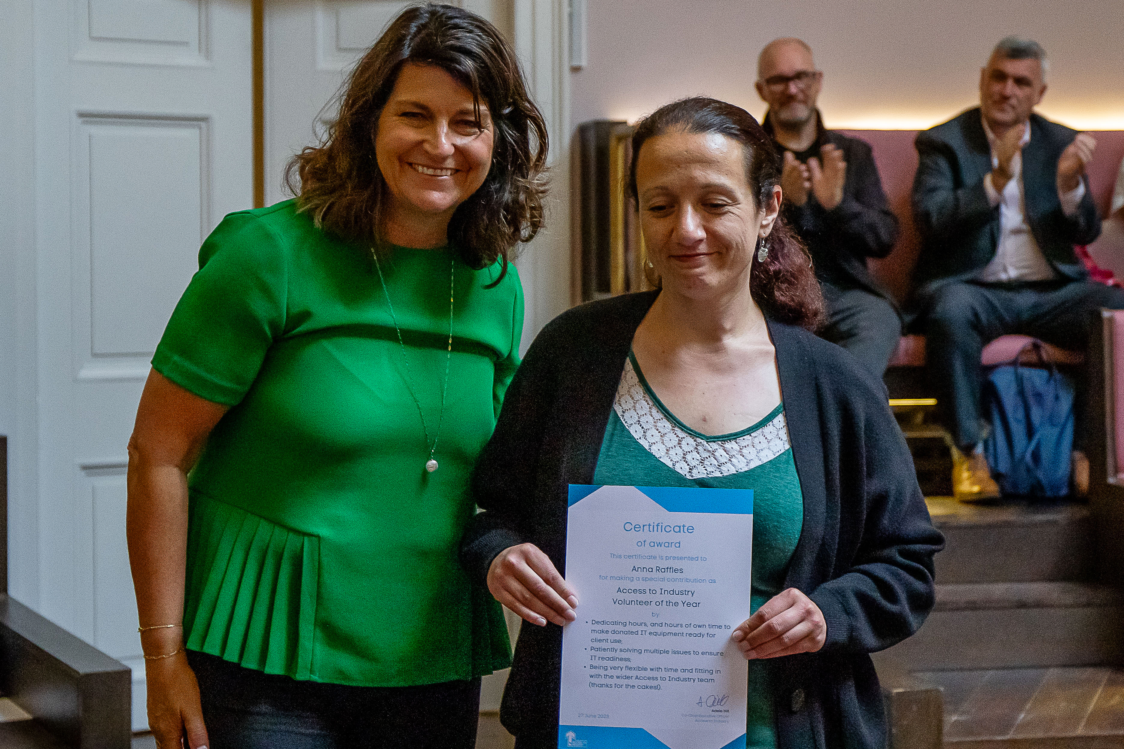 We then moved on to our 'Special Awards' – awarding Volunteer of the Year to Anna Raffles for helping provide usable IT equipment for our students: