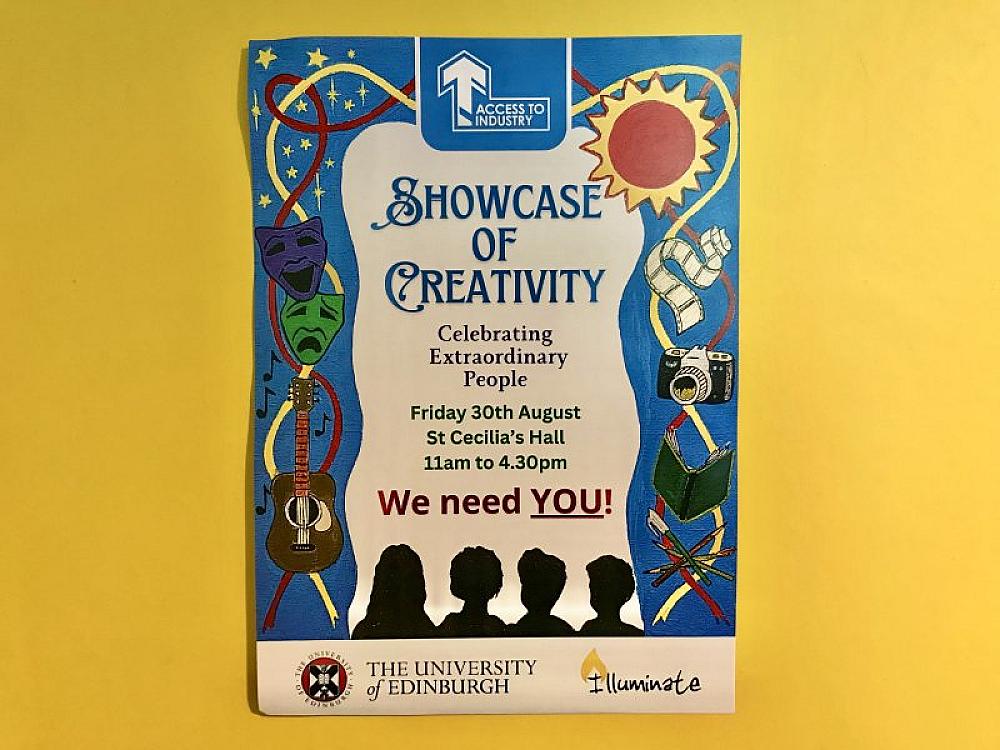 Our inaugural Showcase of Creativity on Friday 30 August 2024 (11am-4:30pm) at St Cecilia’s Hall is a chance for us to celebrate the creative community of people that we support. We are delighted to invite you to attend this student-led showcase event, featuring photography, artwork, writing, video, performance and writing workshops.