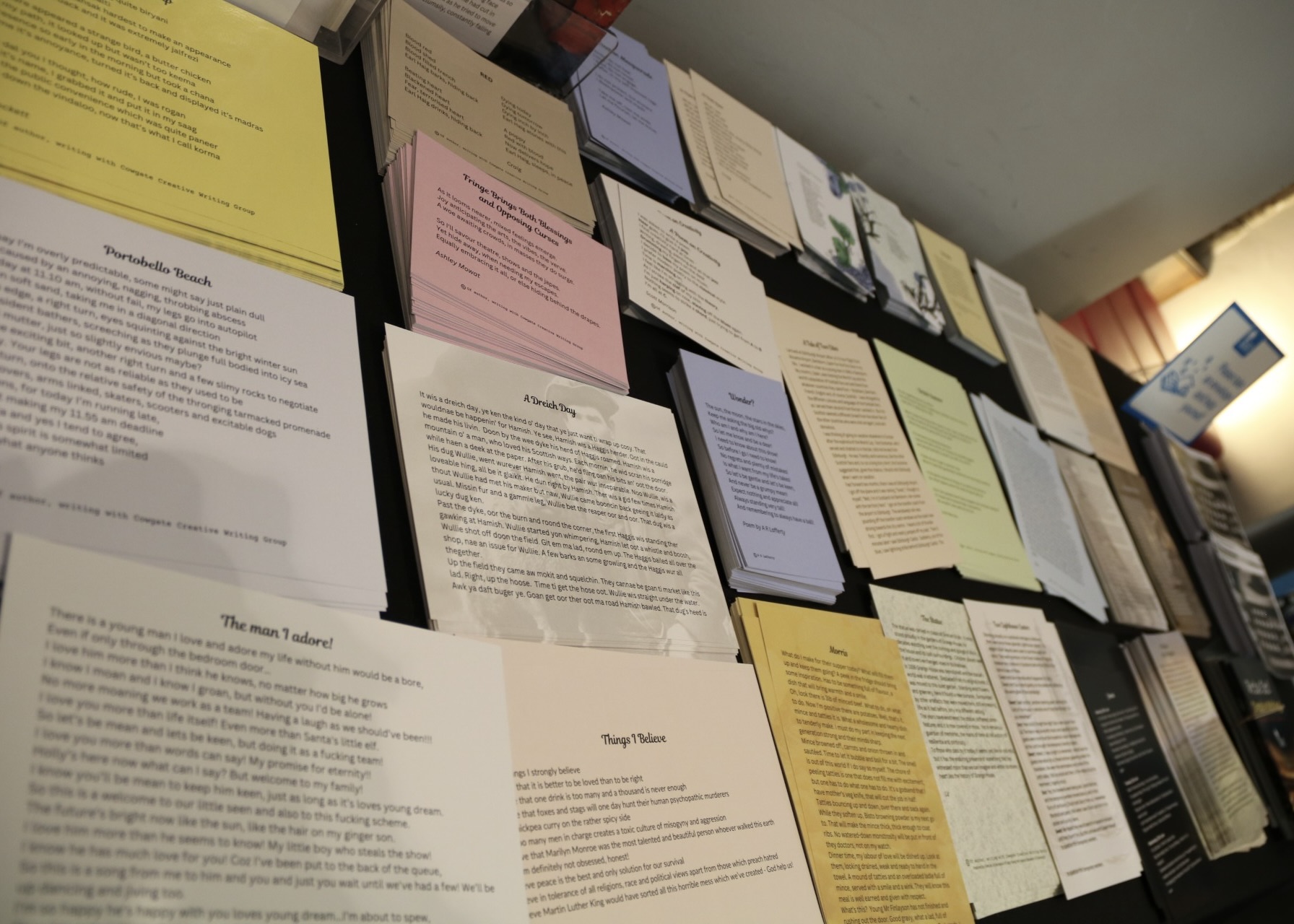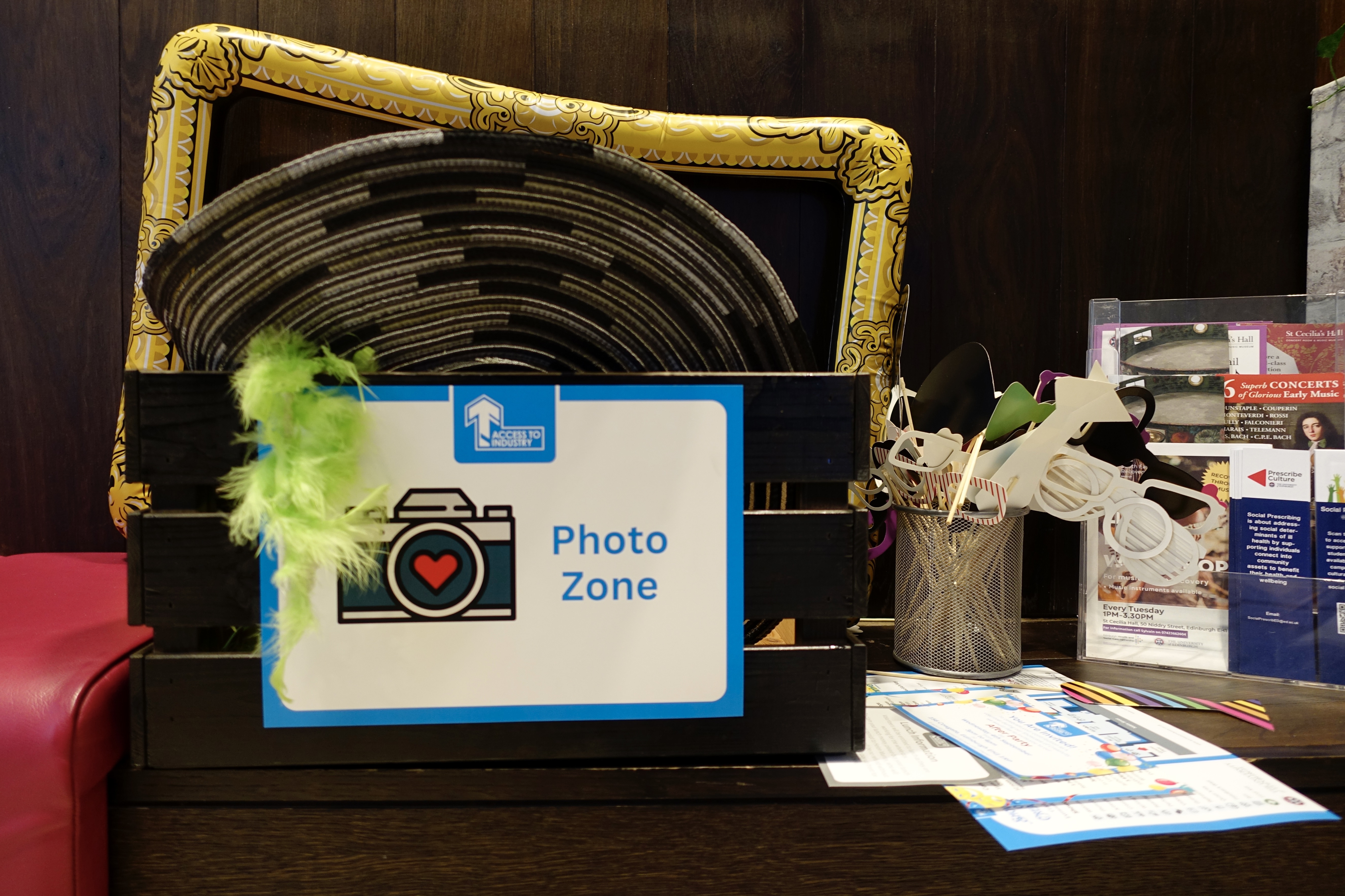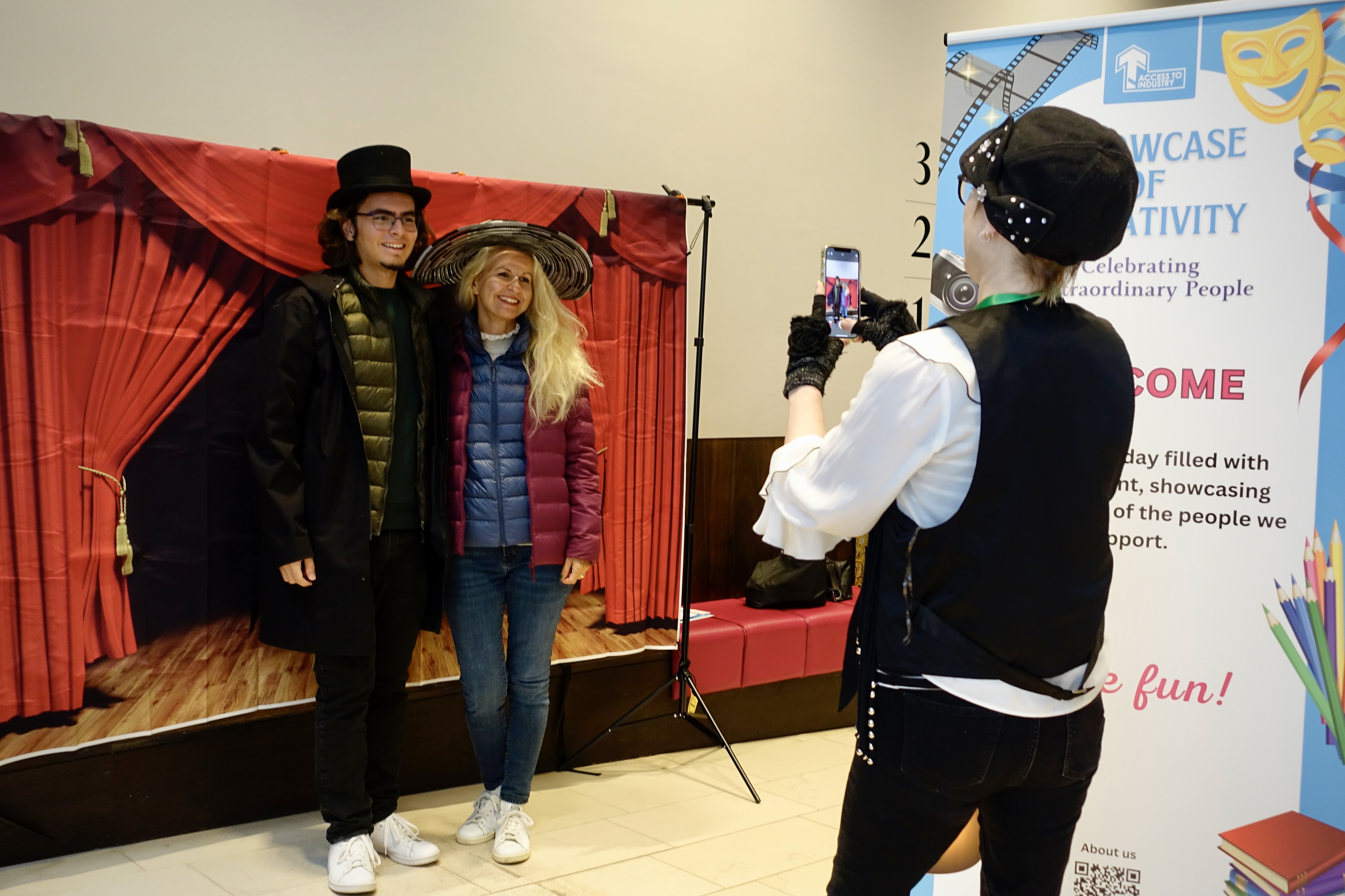Guests were greeted on arrival by our welcome desk volunteers, where there was also a dress-up box and photo shoot area where they could have some fun and get into the celebratory spirit of the day:Attendees were then free to browse the selection of photography, artwork and writing on display in the lower area of the building: