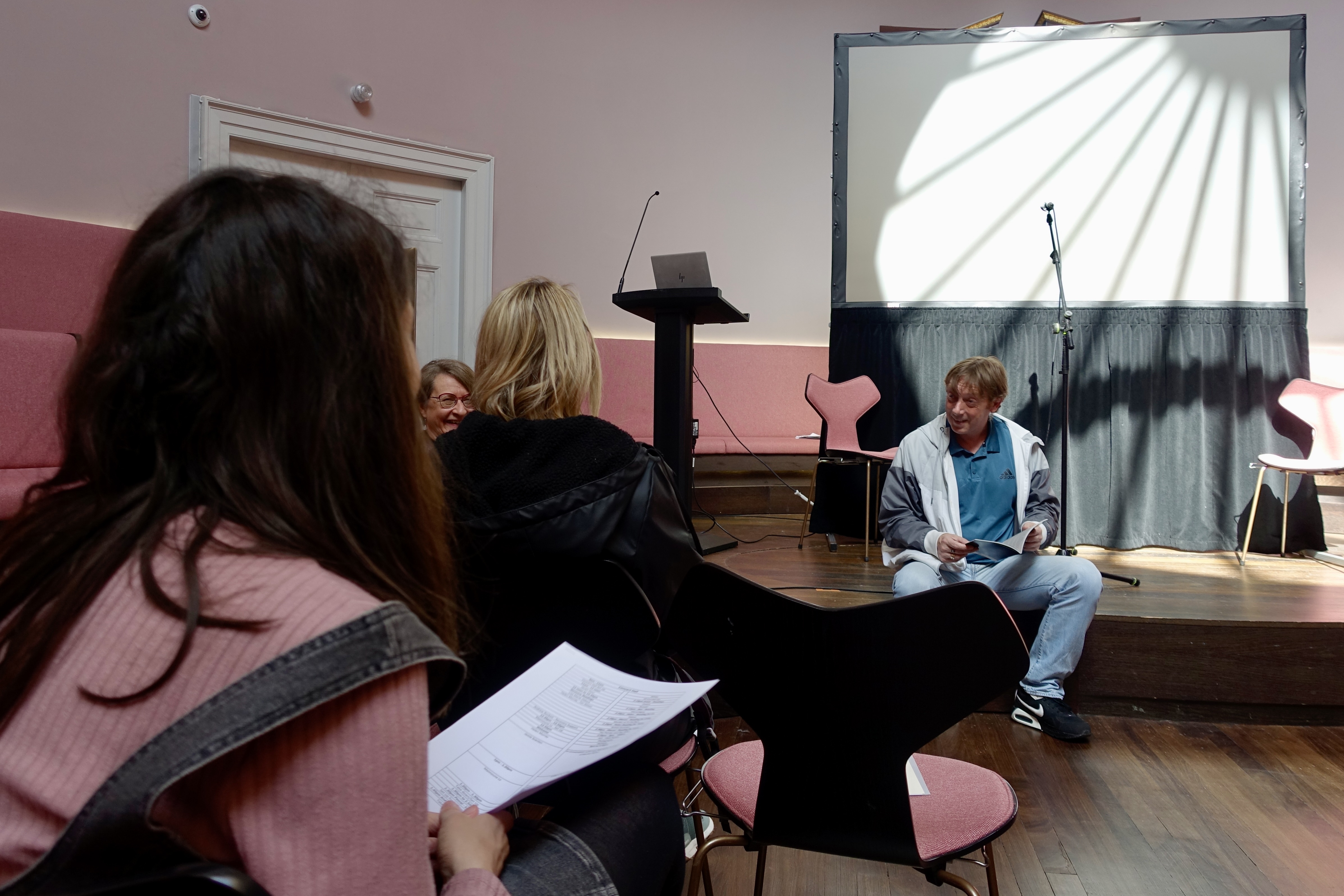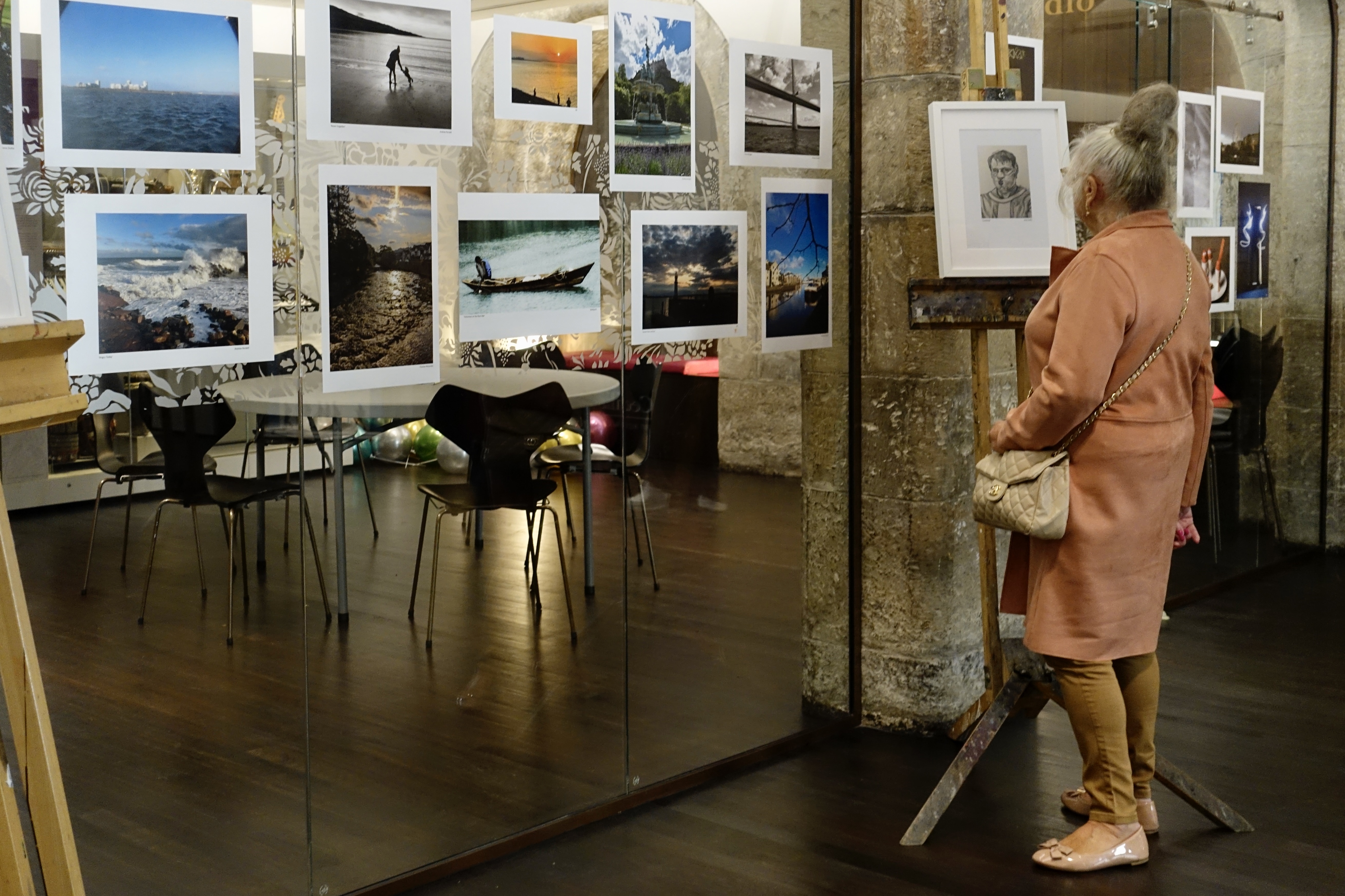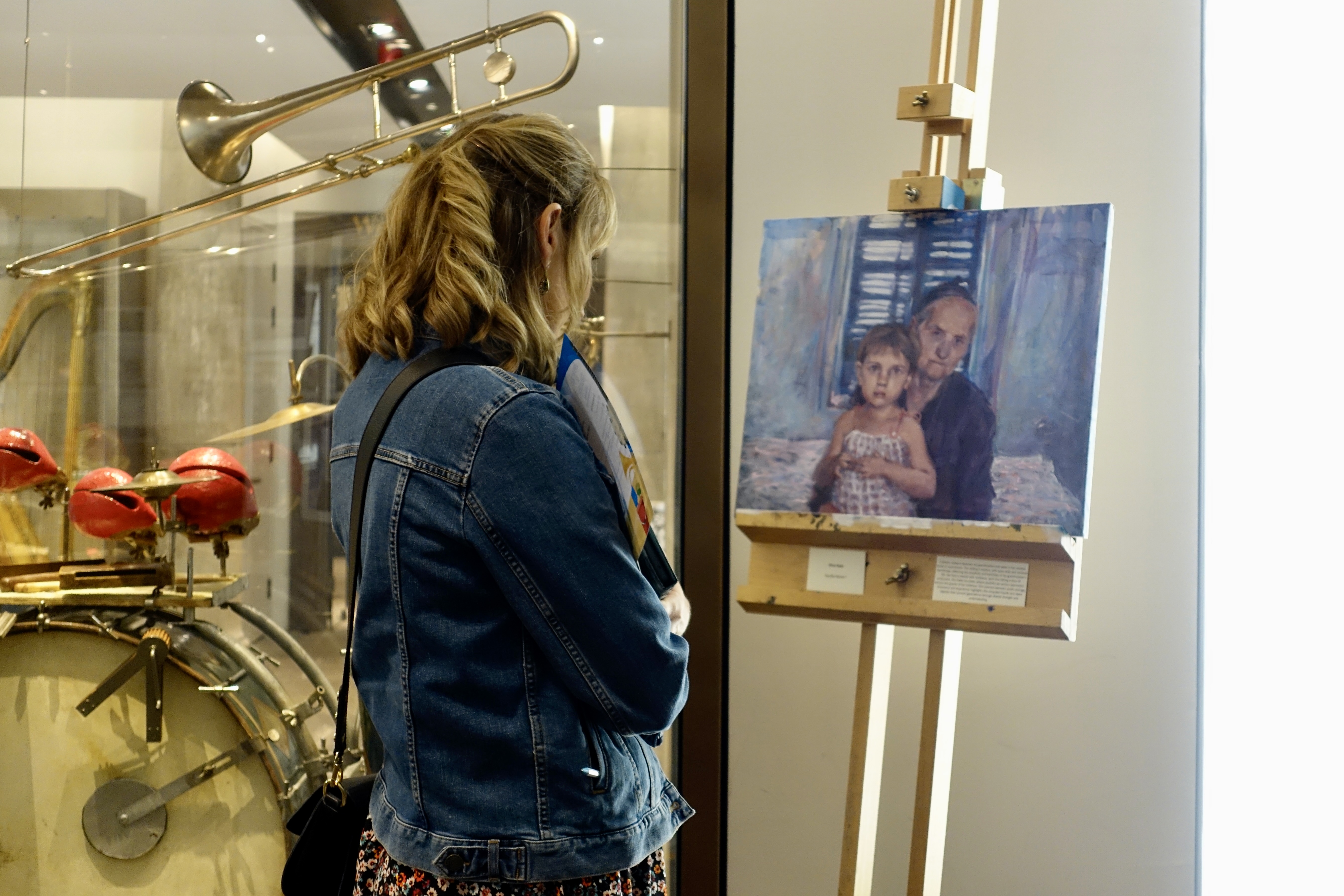 Guests were greeted on arrival by our welcome desk volunteers, where there was also a dress-up box and photo shoot area where they could have some fun and get into the celebratory spirit of the day:Attendees were then free to browse the selection of photography, artwork and writing on display in the lower area of the building: