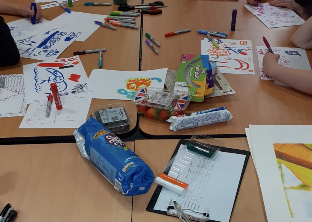 The sessions were led by Beth Farmer, a practising artist and creative facilitator, who specialises in facilitating spaces for people to come together to engage in artmaking, through the design and delivery of arts programmes to school and community-based groups. She has extensive experience leading projects which support marginalised groups and communities.