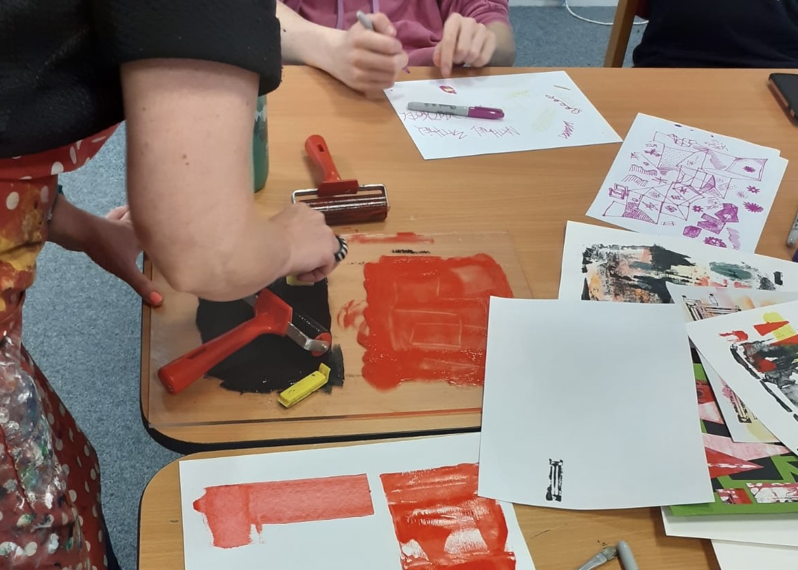 The young people tried their hand at Mono Printing, Lino Printing, Riso Printing, and Screenprinting (onto t-shirts), enthusiastically getting stuck in with each printing practice and producing some beautiful pieces of art.